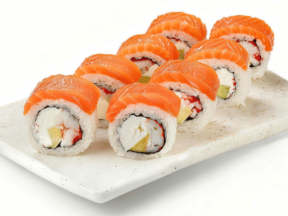 Внимание!!! Откатывается только профессиональными сушистами!!! Лосось, креветка, творожный сыр, авокадо, икра масаго, рис, нори