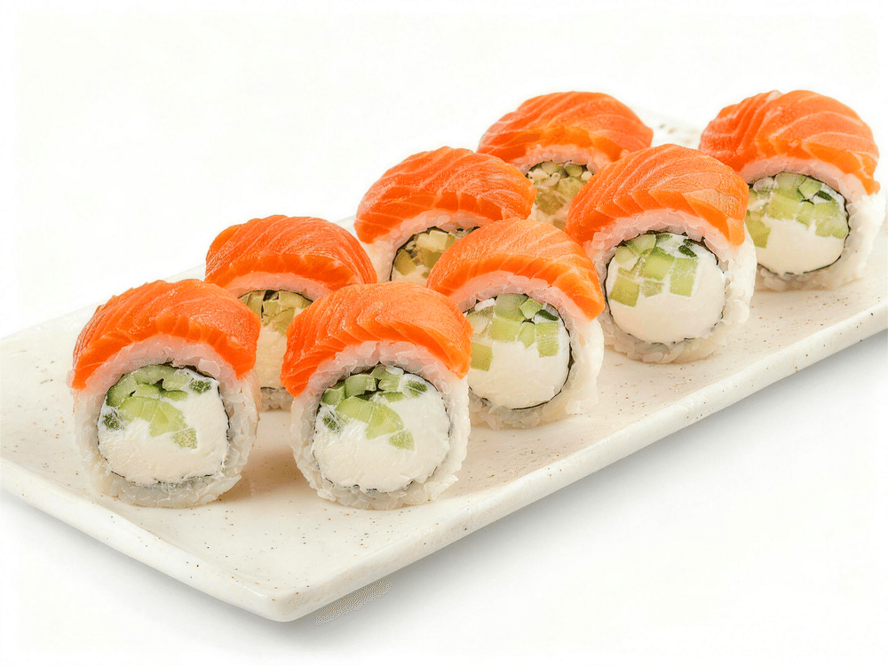 Меняем стереотипы!!! Начинки в 2 раза больше чем риса!!! Много лосося, много творожного сыра, свежий огурец, рис, нори