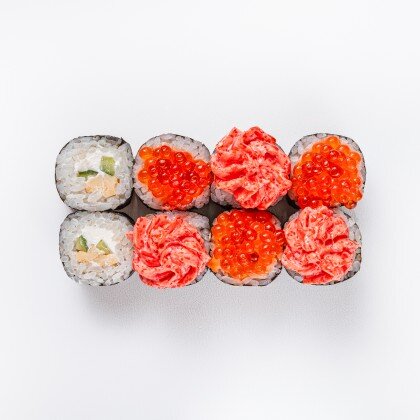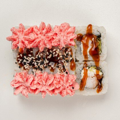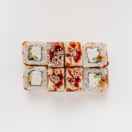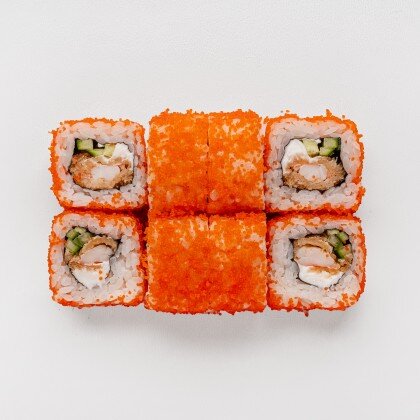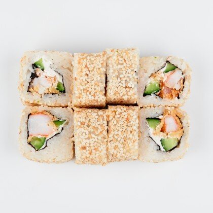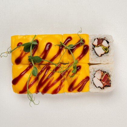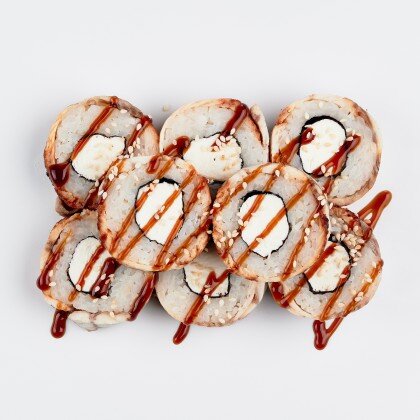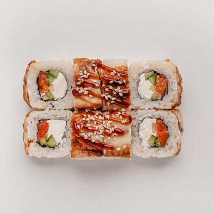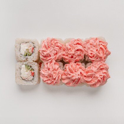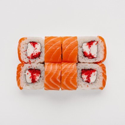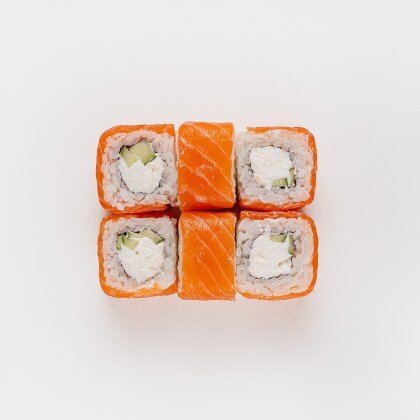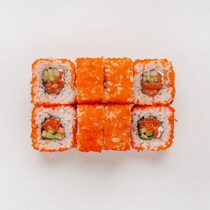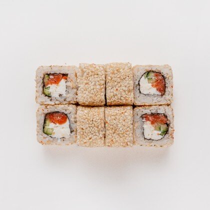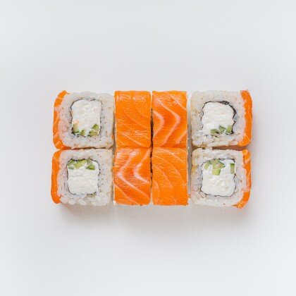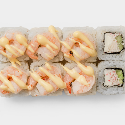 Лосось, сливочный сыр, огурец, рис, соус Лава