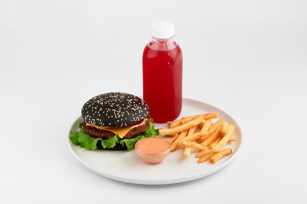 Картофель Фри-75 гр, Black-бургер, Напиток 0,33 л (на выбор)