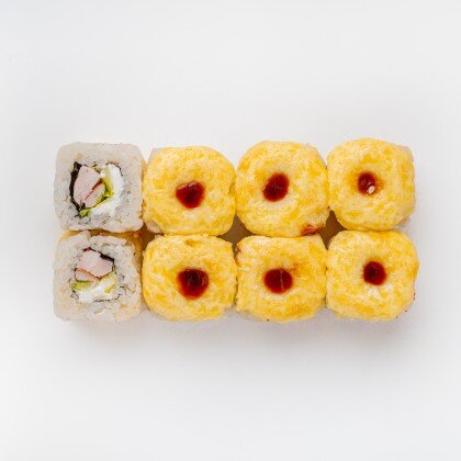 Снежный краб, рис, сливочный сыр, соус Унаги, кунжут белый