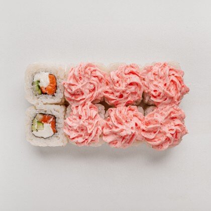 Креветка, майонез, рис, икра масаго оранжевая, огурец