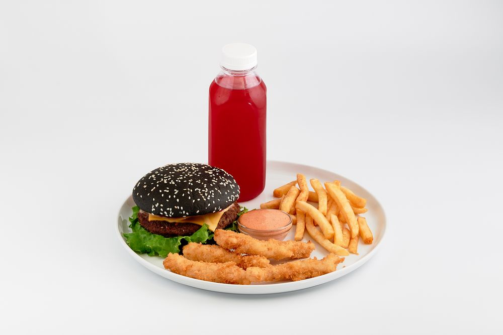 Картофель Фри-75 гр, Тори Темпура- 90 гр, Black-бургер, Напиток 0,33 л (на выбор)