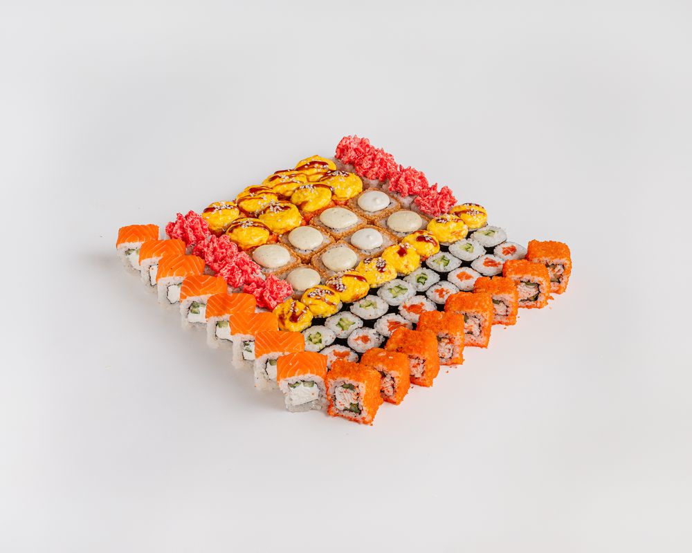 лава кани, чииз тори темпура, фила лайт, калифорния, сяке маки, невада, огурец ролл, ханито